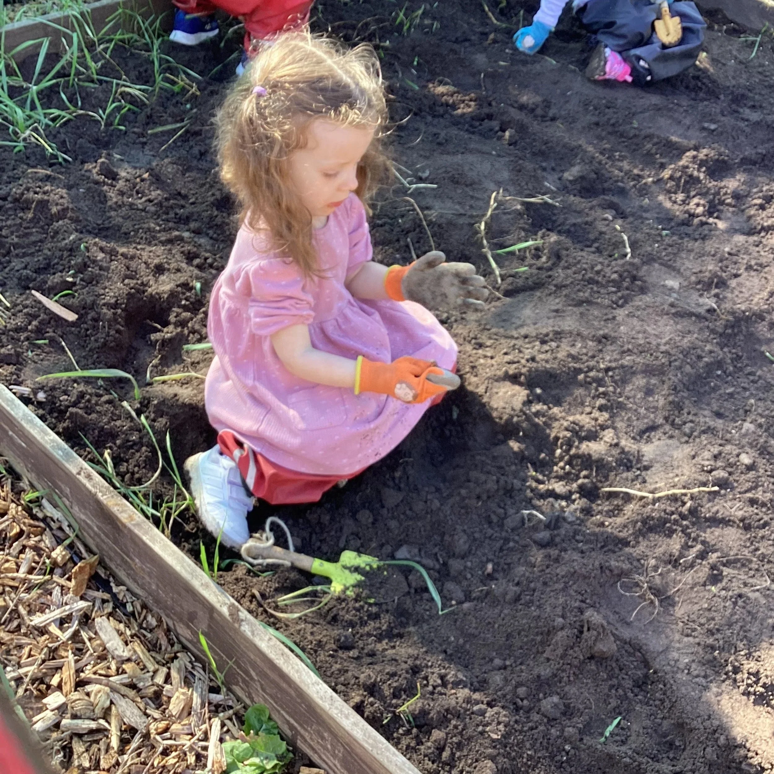 This week, we had a very special visitor join us at the allotment. Bunny had decided to help us however Bunny spent his day relaxing in our herb garden on a garden bench! Whilst everyone else had a power snooze on the bus back to nursery, Bunny enjoyed a cuddle with his favourite person. Thanks for all of your ‘help’ Bunny.
