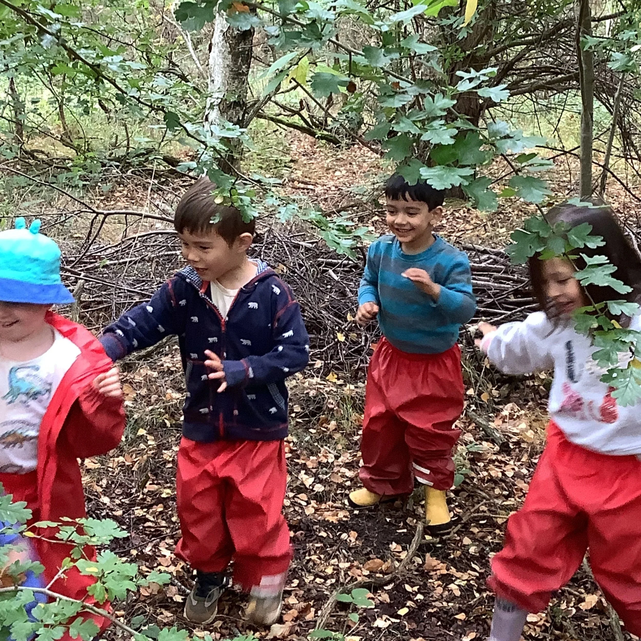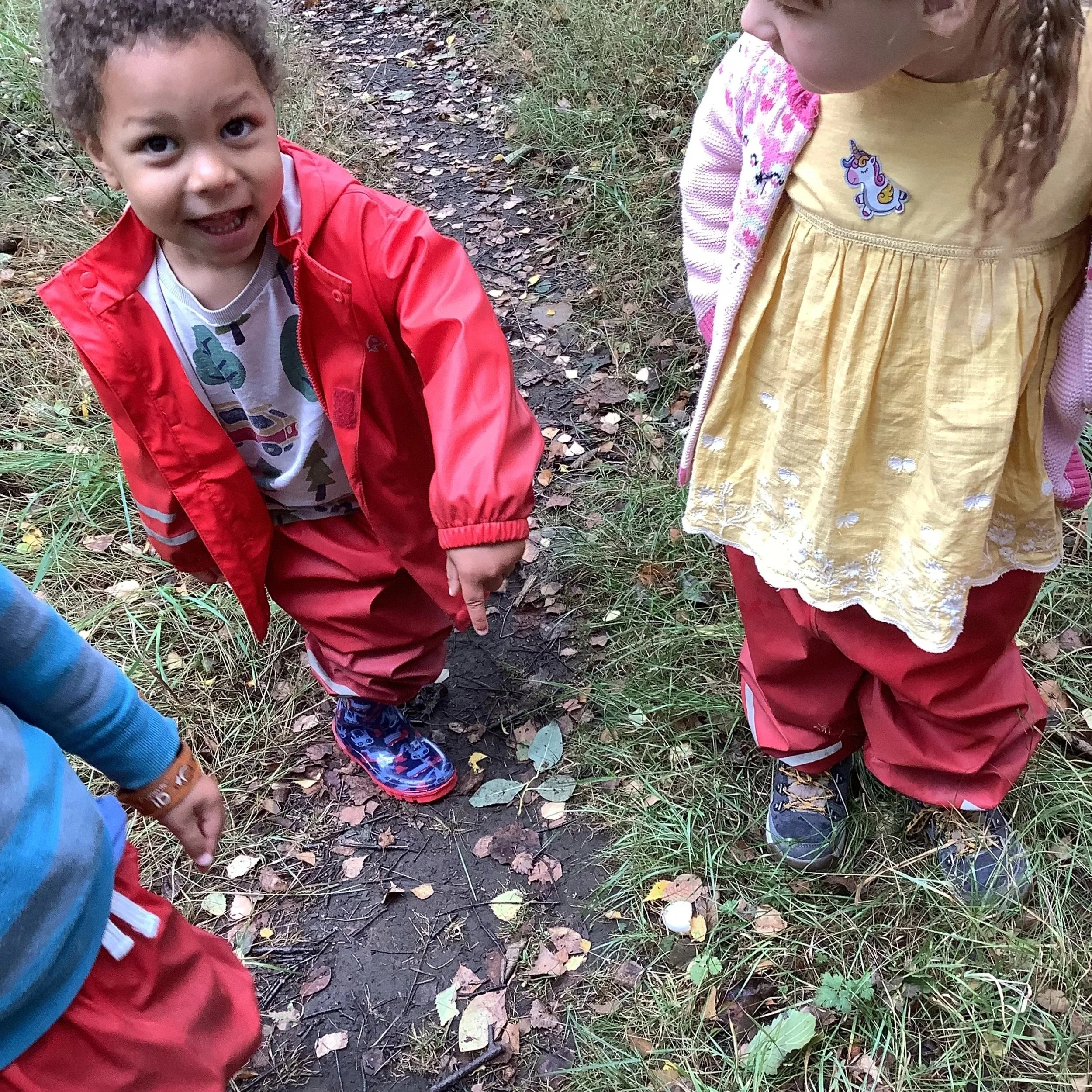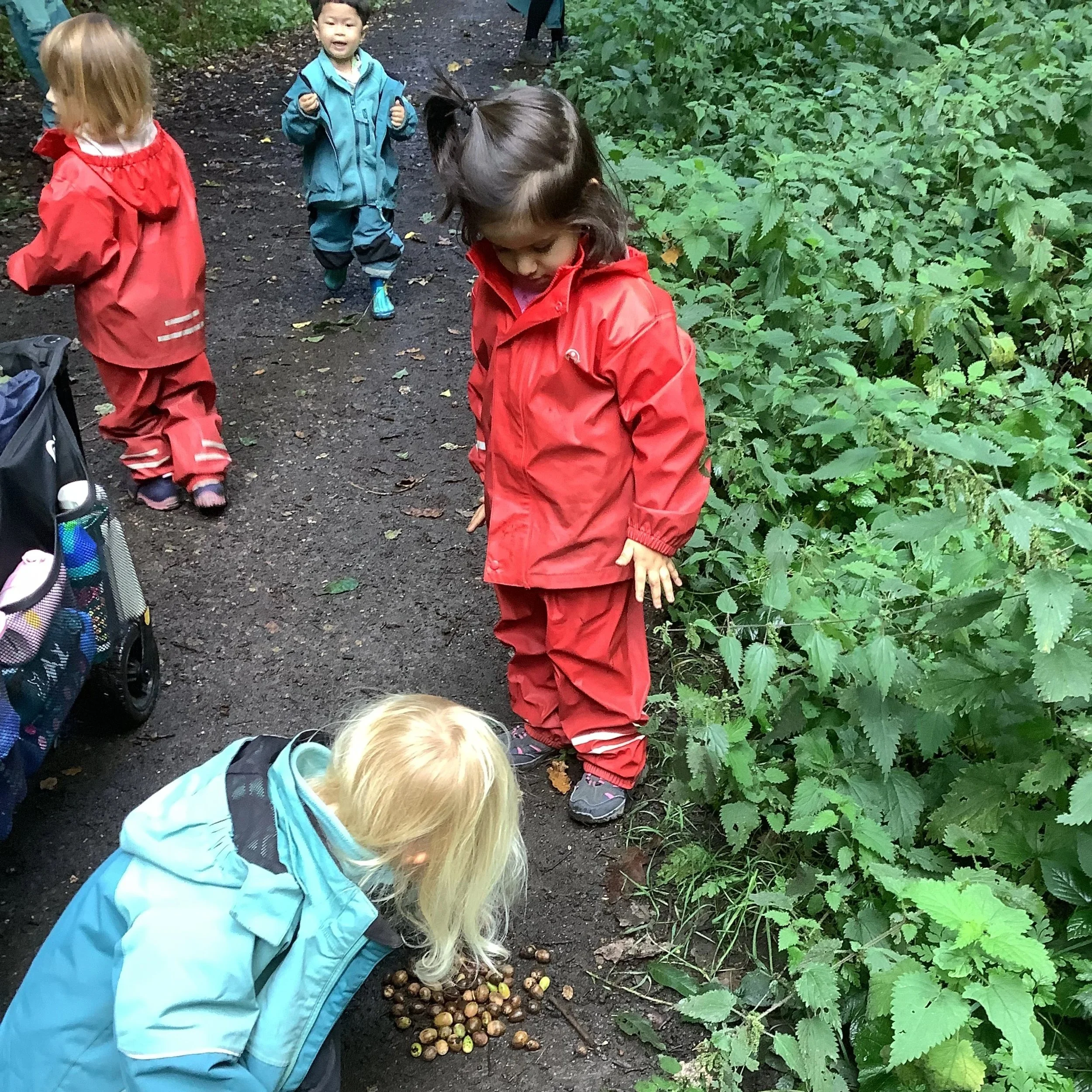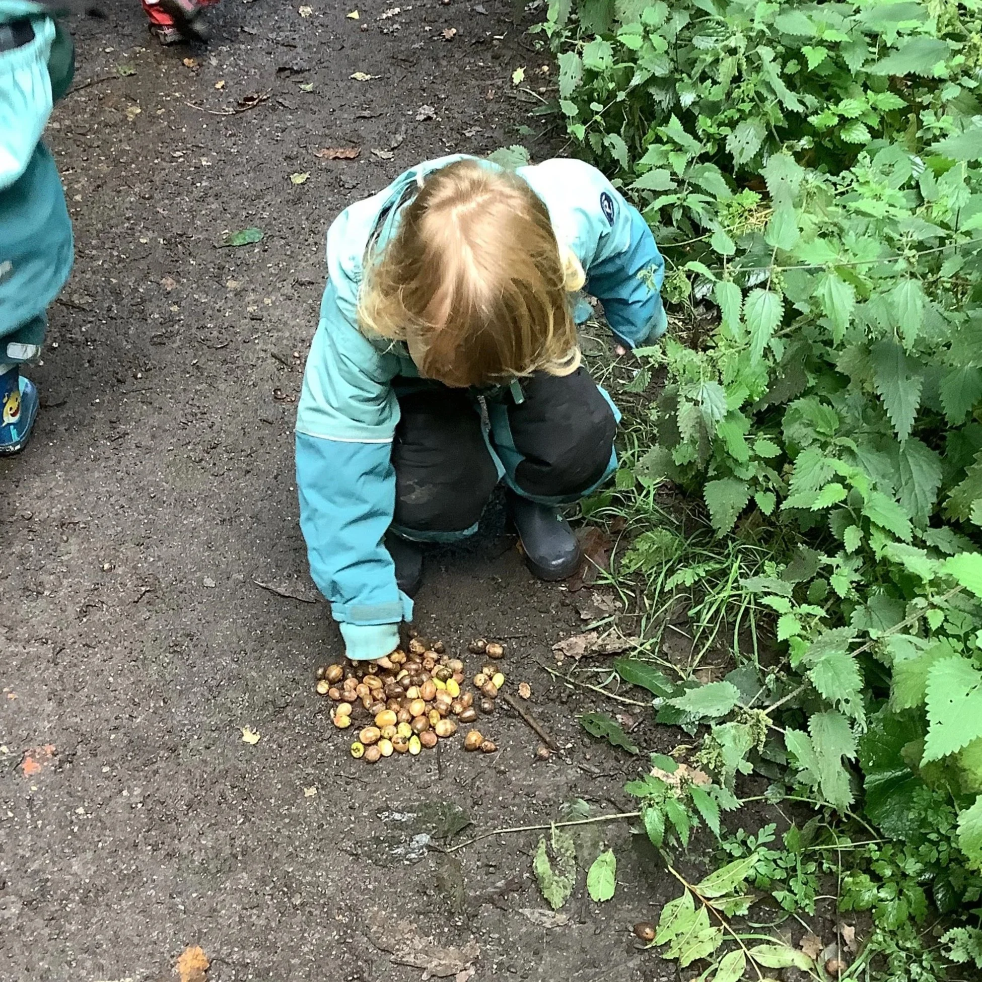 This week at forest school the children were intrigued by the discovery of yet more acorns! But this time we noticed something a little different. Some of the acorns were beginning to sprout roots. We chatted about what that could mean and what could happen in the future. After identifying trees in the morning, the children were all aware that if we planted the little acorn, we may grow our very own oak tree. Now this would be an amazing experiment and so we took a couple back to nursery to see if we could grow one. The other children wanted to collect the acorns together in a pile for the squirrels. We had engaged in this activity in a previous week and when the children noticed the pile was gone, they believed the squirrels had taken them and they should repeat the activity, helping the squirrels in the process.