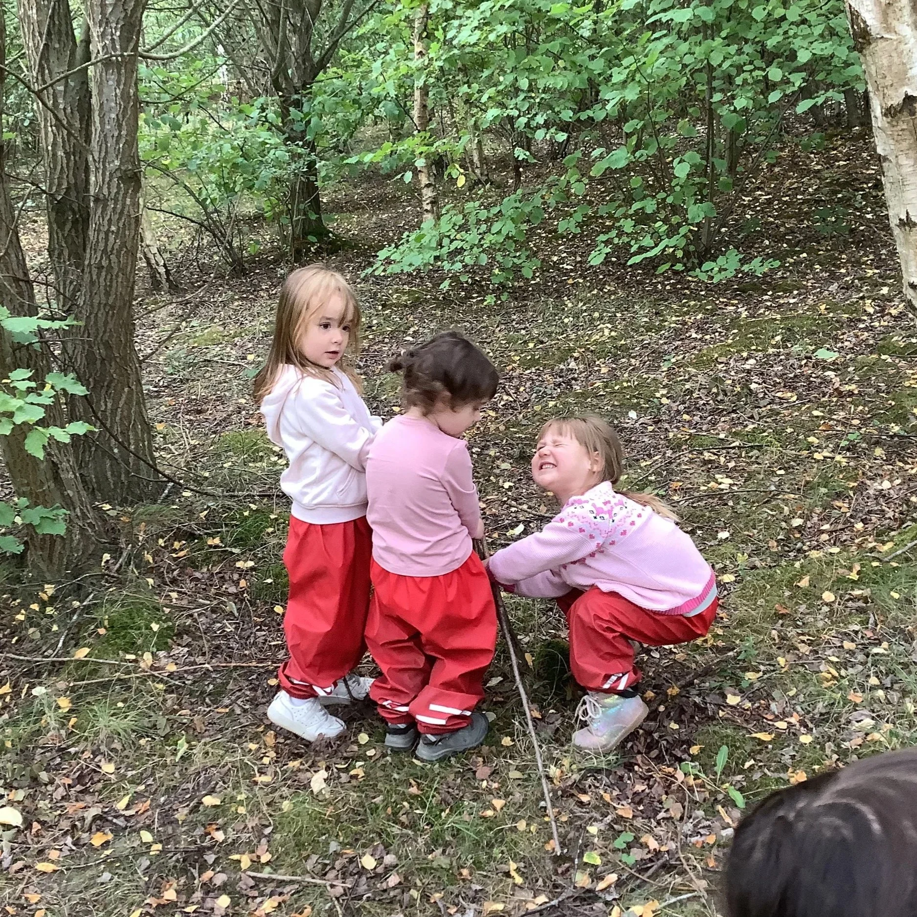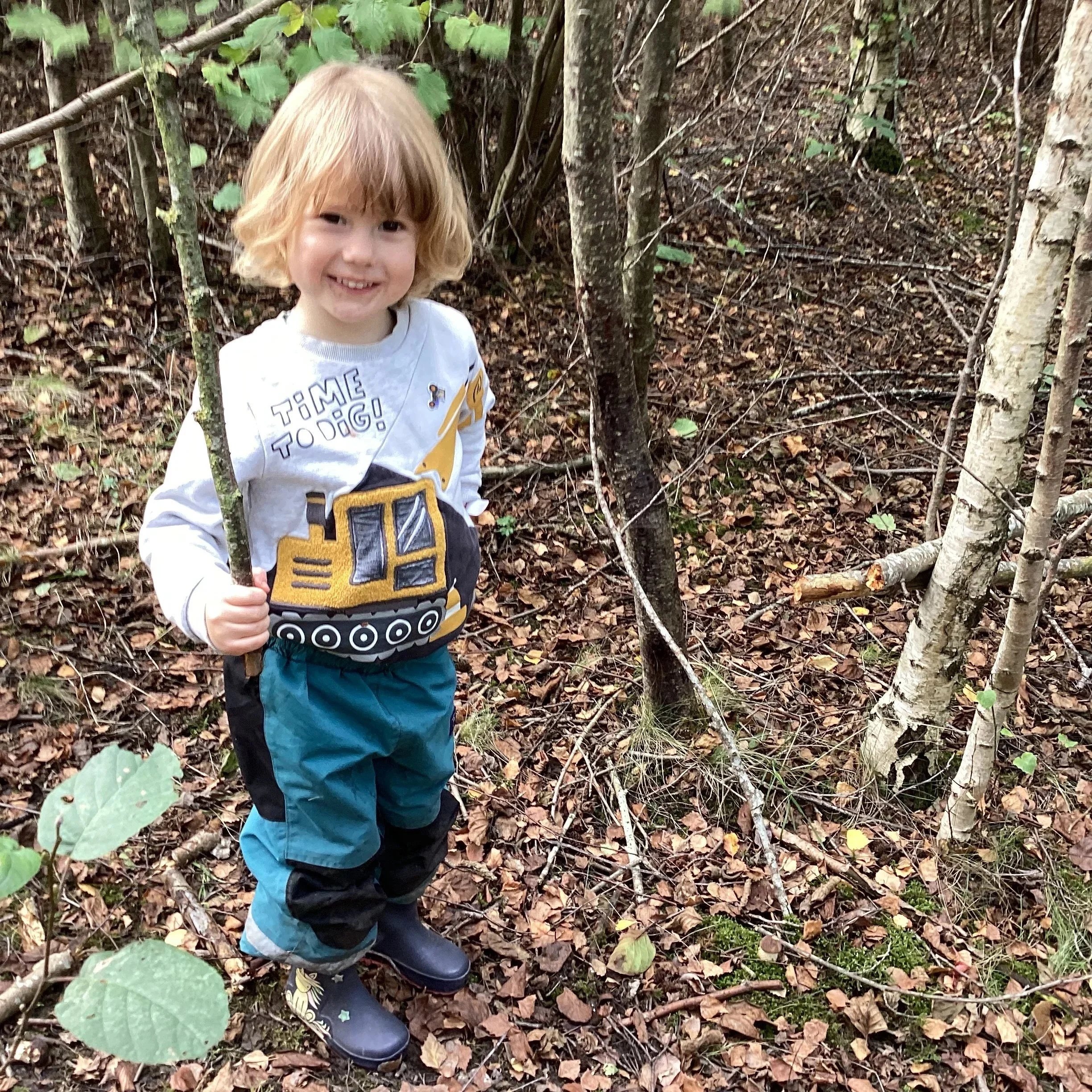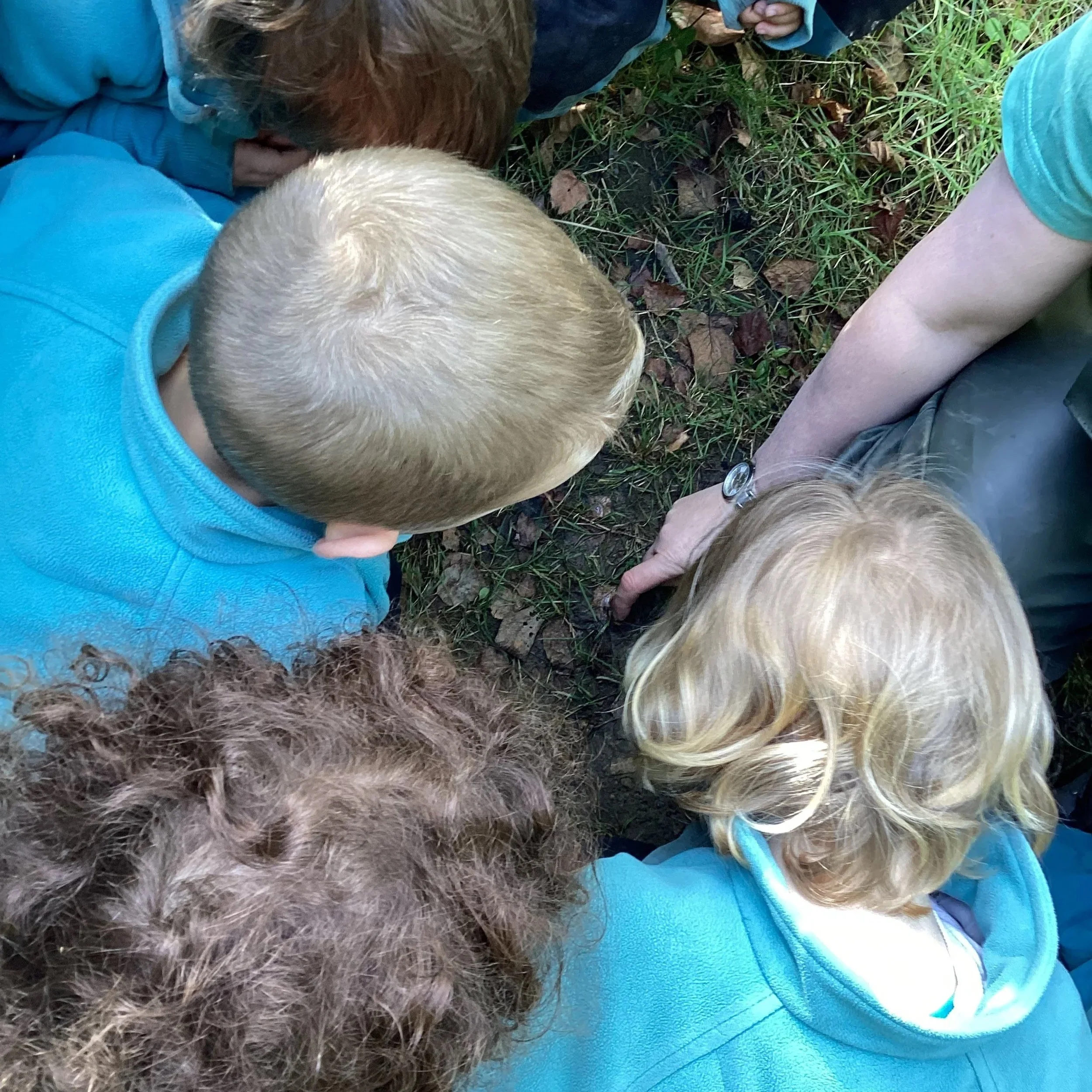 This week we welcomed a brand new group of children to forest school and wow, what adventures we had! We started our day discussing our forest school promises and learning about the environment. We wanted to find the big pond and it took quite a while but on our way we spotted some blackberries, an apple tree and a silver birch! We spotted a large branch sticking out of the ground. Some of the children decided to try and pull it out but it was stuck! Even teamwork couldn’t get the branch out of the ground but it did create lots of conversation, negotiation and compromise.