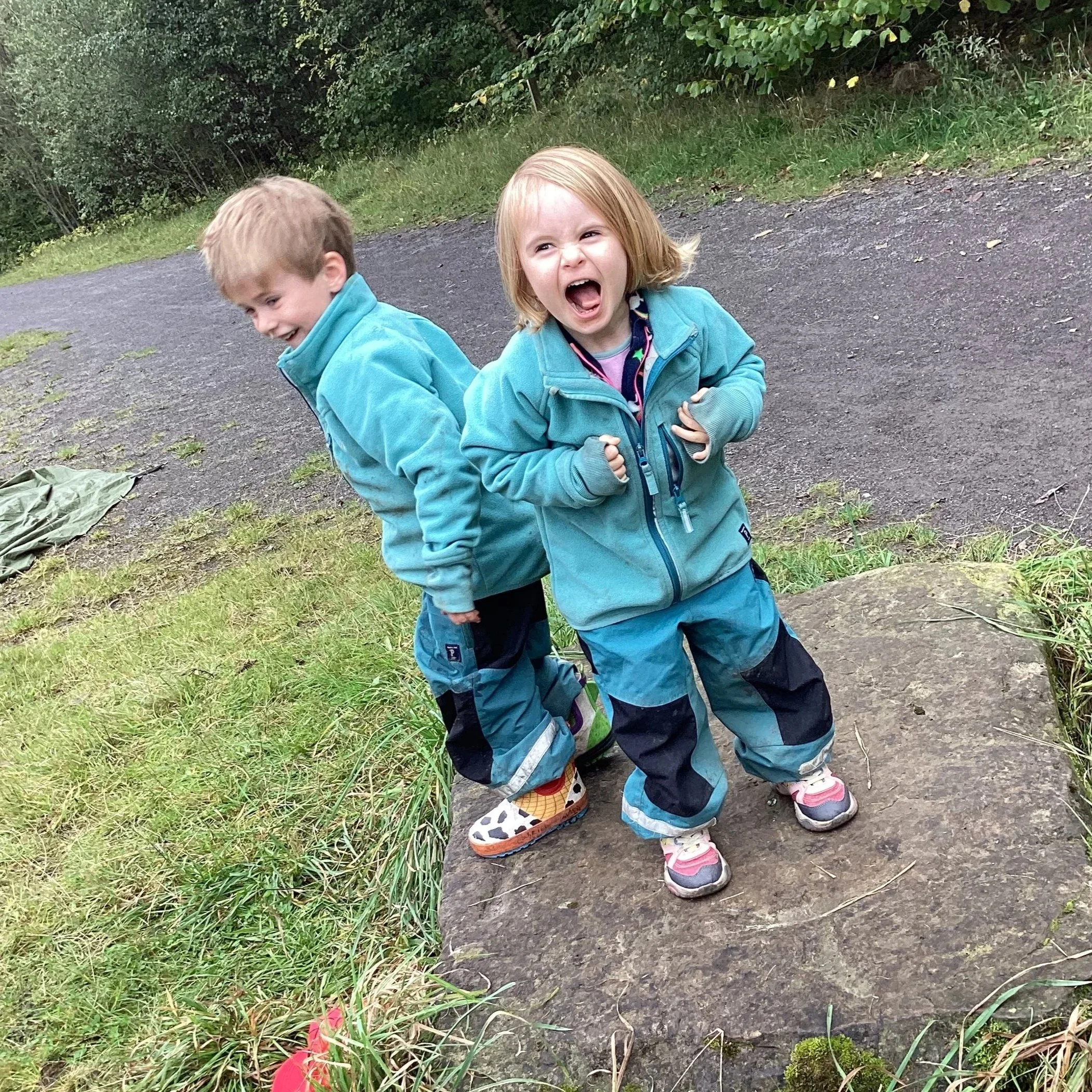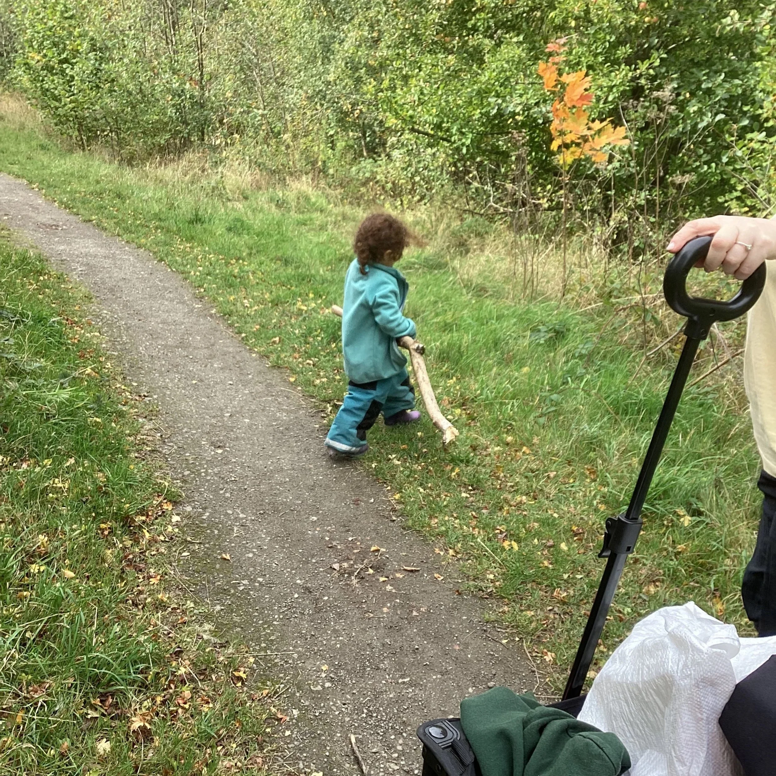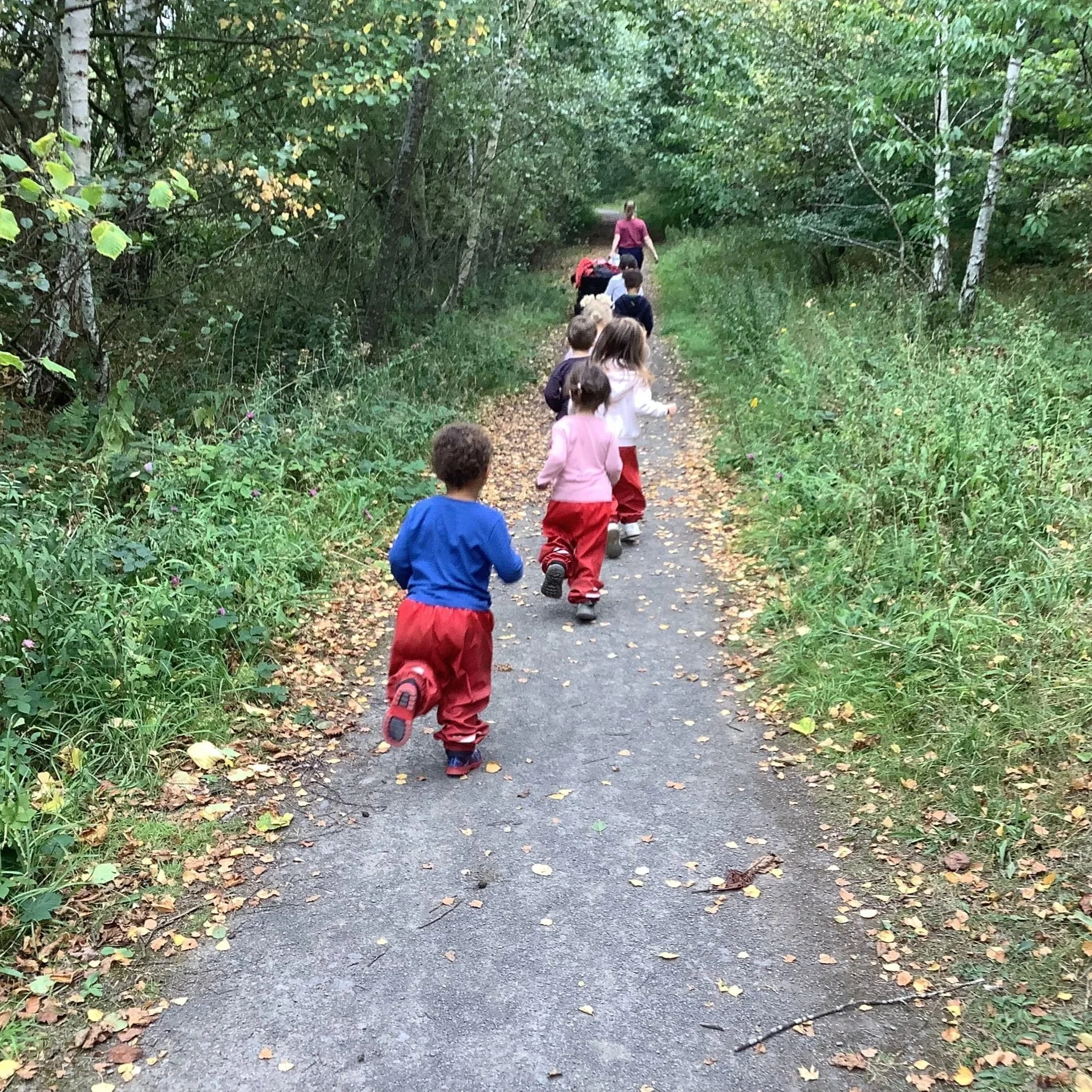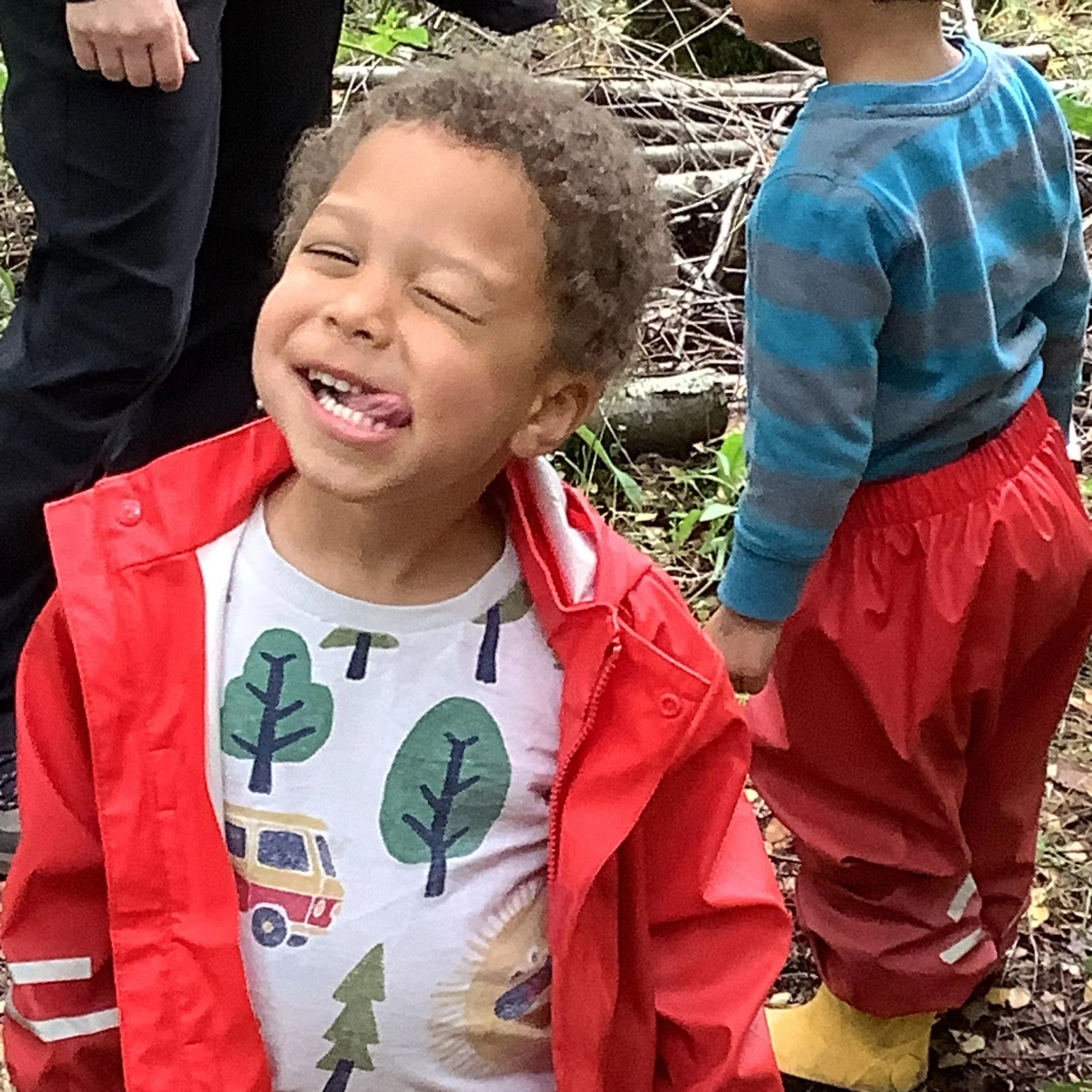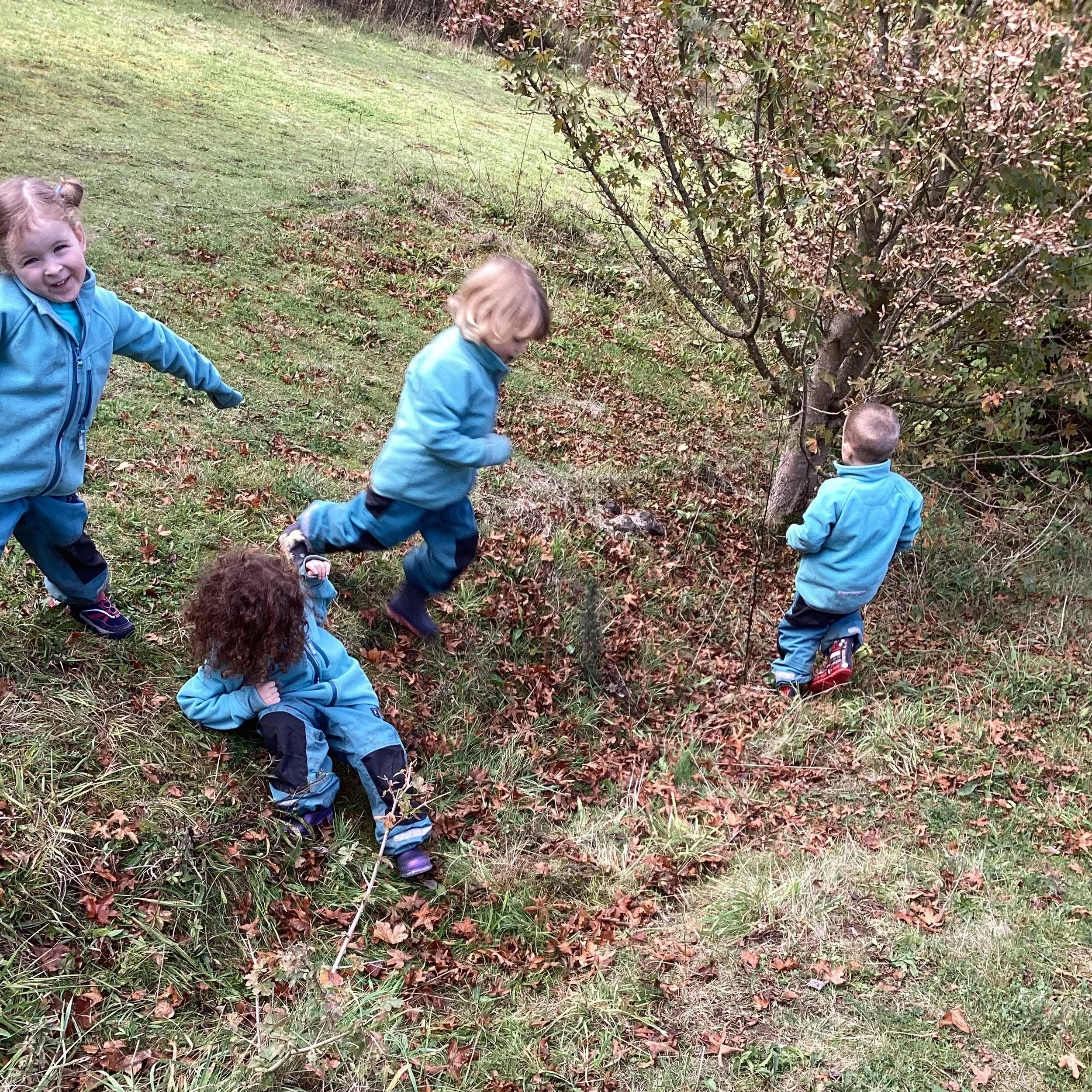 After lunch, we cleared our fire pit, ensuring we followed our forest school rules of always leaving the area as you find it and off we headed into the forest. This time round, we were heading in from a different direction so there were lots of new things to see and engage with. The children found a huge meadow which gave us the opportunity to stretch our legs and run as quickly as our legs could carry us, making everyone chuckle. As we headed down the big path, Jen pointed out the ‘sneaky path’ which all children who have ever been to forest school know about. This path allows the children to walk down by themselves and the grownups meet at the bottom (we can of course see the children clearly but they don’t know that). The children thought this was amazing and they displayed their forest school knowledge by putting out their arms and bending their knees to balance. This led to the children climbing other small hills and before we knew it our day was over. See you next time forest school!