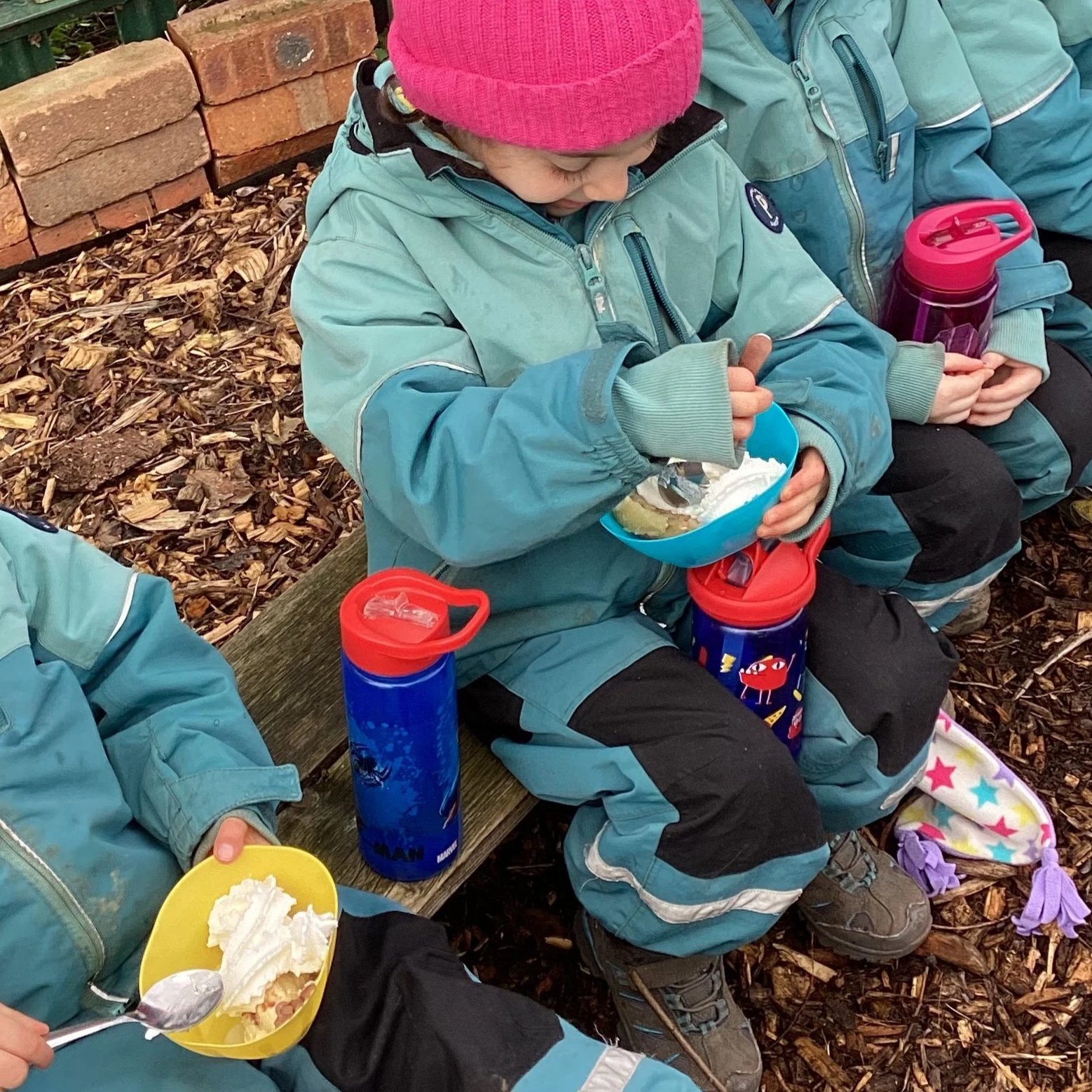 The smell of breakfast cooking outdoors was wonderful, and everyone eagerly waited to taste what they had made. The patties were a huge success, so delicious that some of the children even went back for seconds! As the breakfast was served, the children gazed in amazement at the variety of colours on their plates and thoroughly enjoyed every bite of their food. After lunch we had some time left which we spent in the meadow. The children enjoyed exploring the space together.