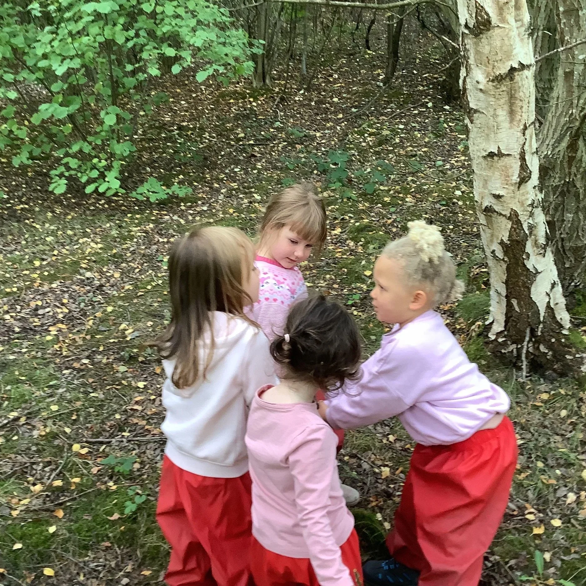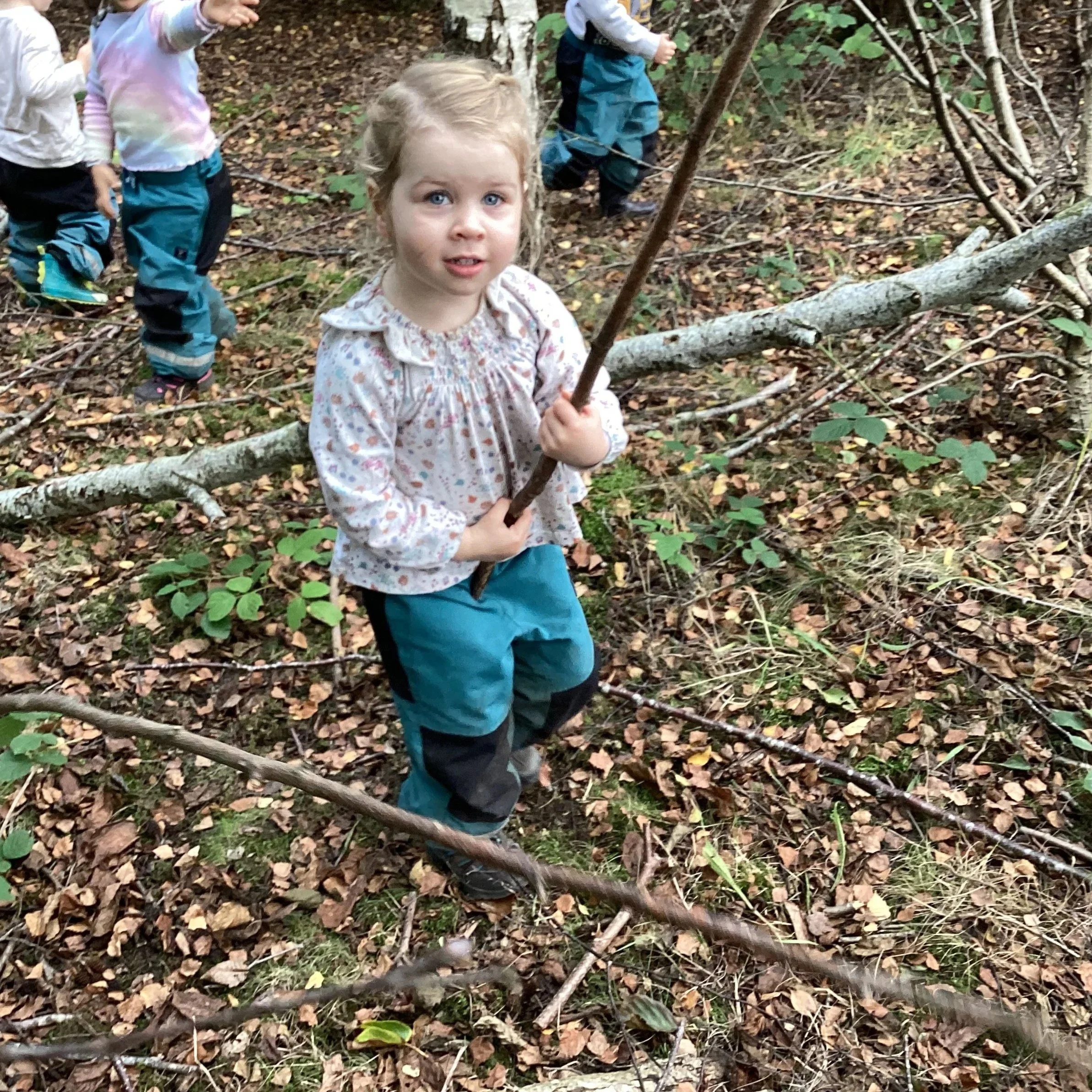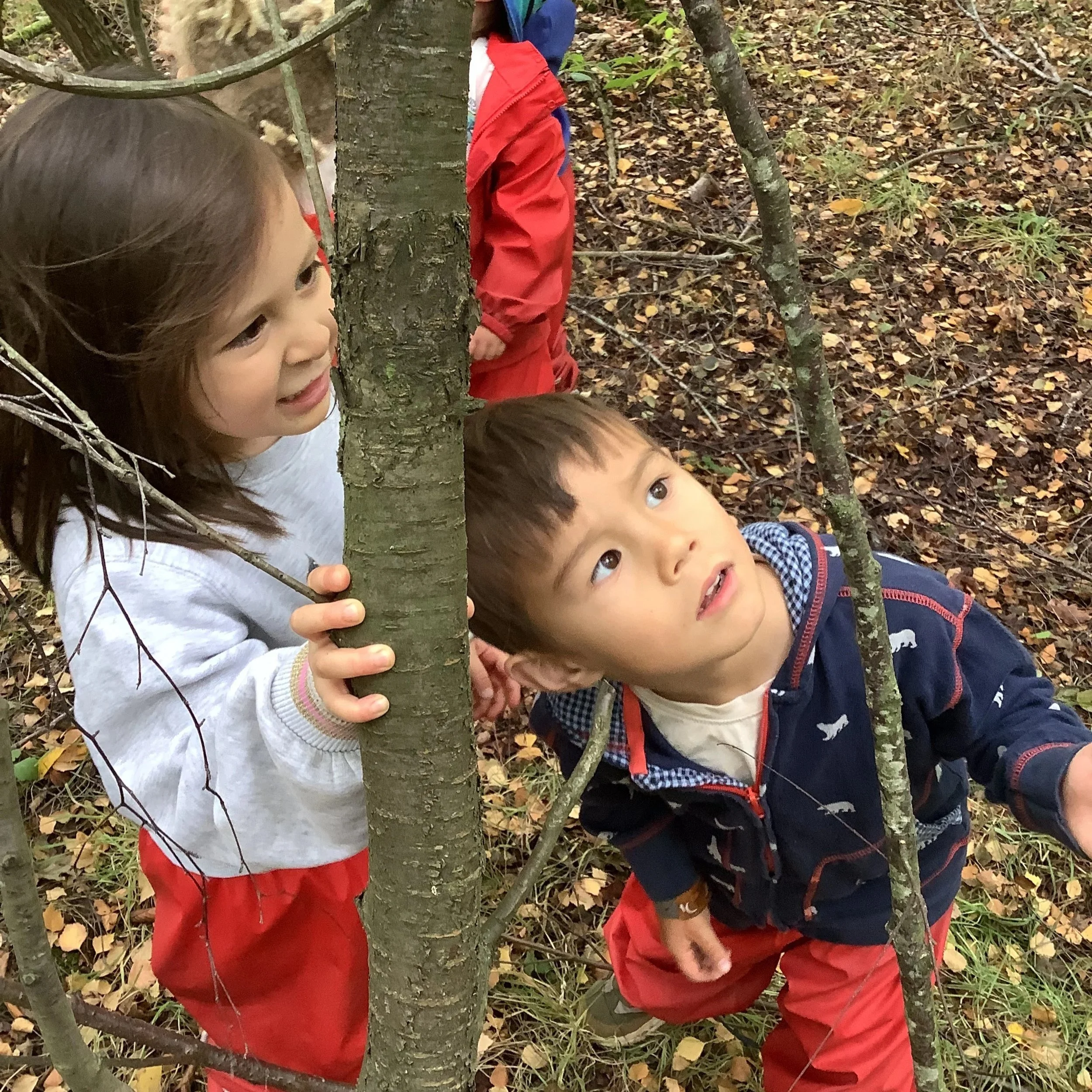 This week the children have continued their explorations in the forest. The children have been interested in climbing, balancing and finding different ways to move around the woodland. This helps the children to develop confidence in the space as well as developing physical skills, spacial awareness and risk assessing.