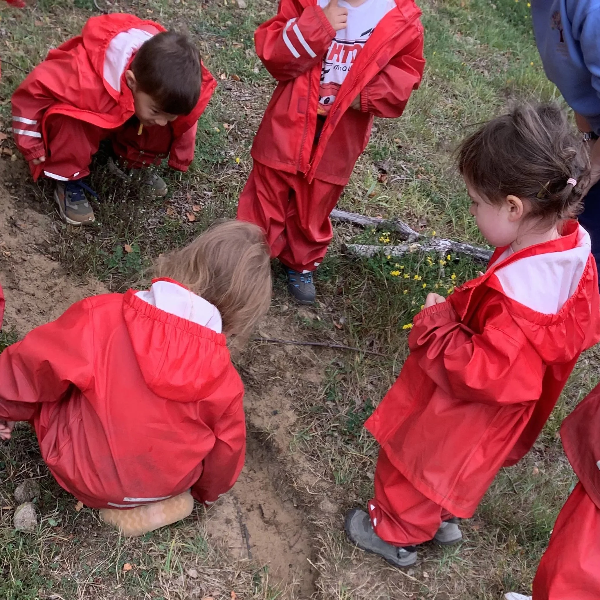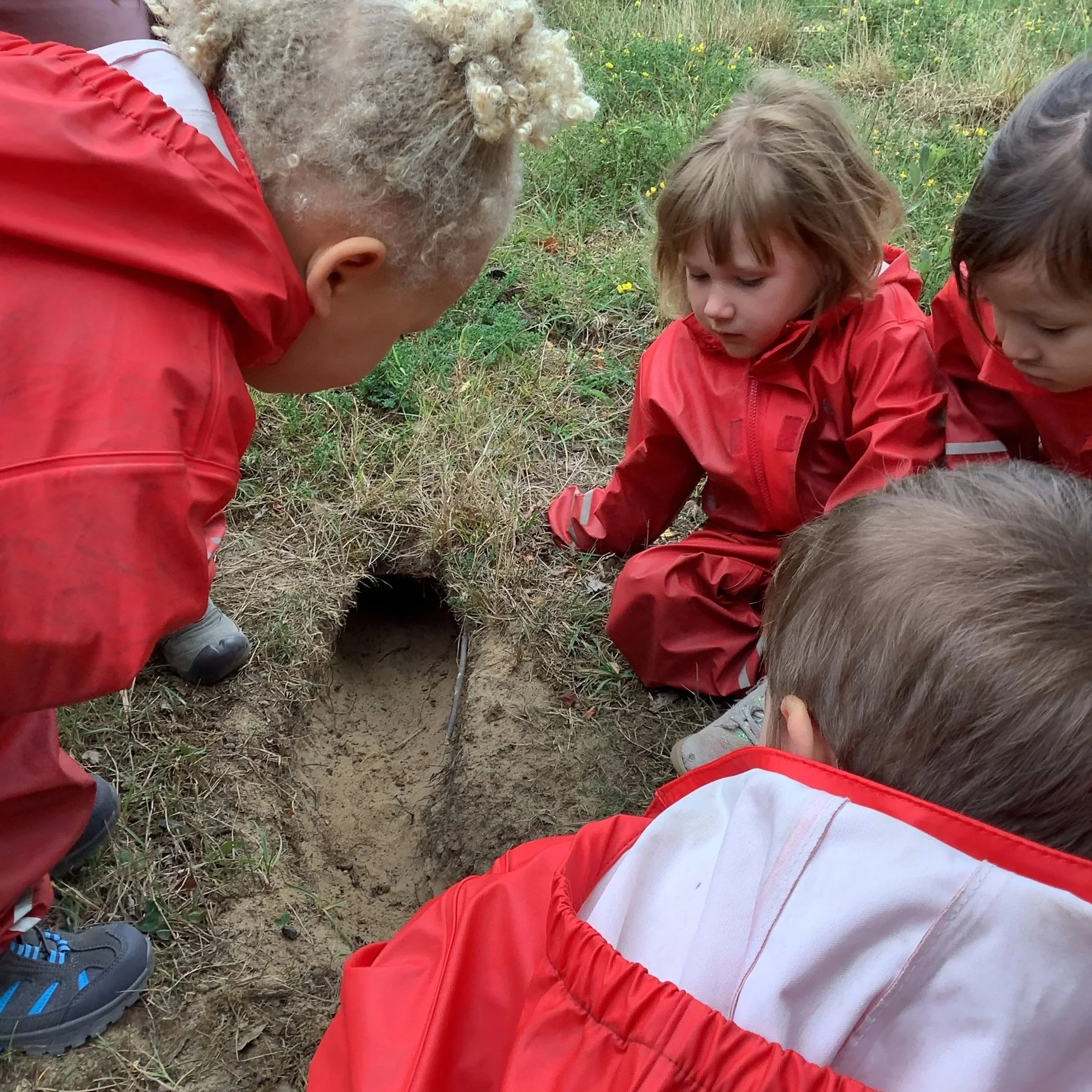 After lunch, the children discover something they had never seen before, a large, deep, dark hole. What sort of animal could have made the hole? The children had some excellent guesses. Could it be a mouse, a vole, a badger, a fox or a rabbit? We started to look for clues and that is when we spotted another hole! This one was very similar to the other one so we decided it must have been the same creature who made it. We spotted some rabbit poo and the children concluded that it was definitely a rabbit home!