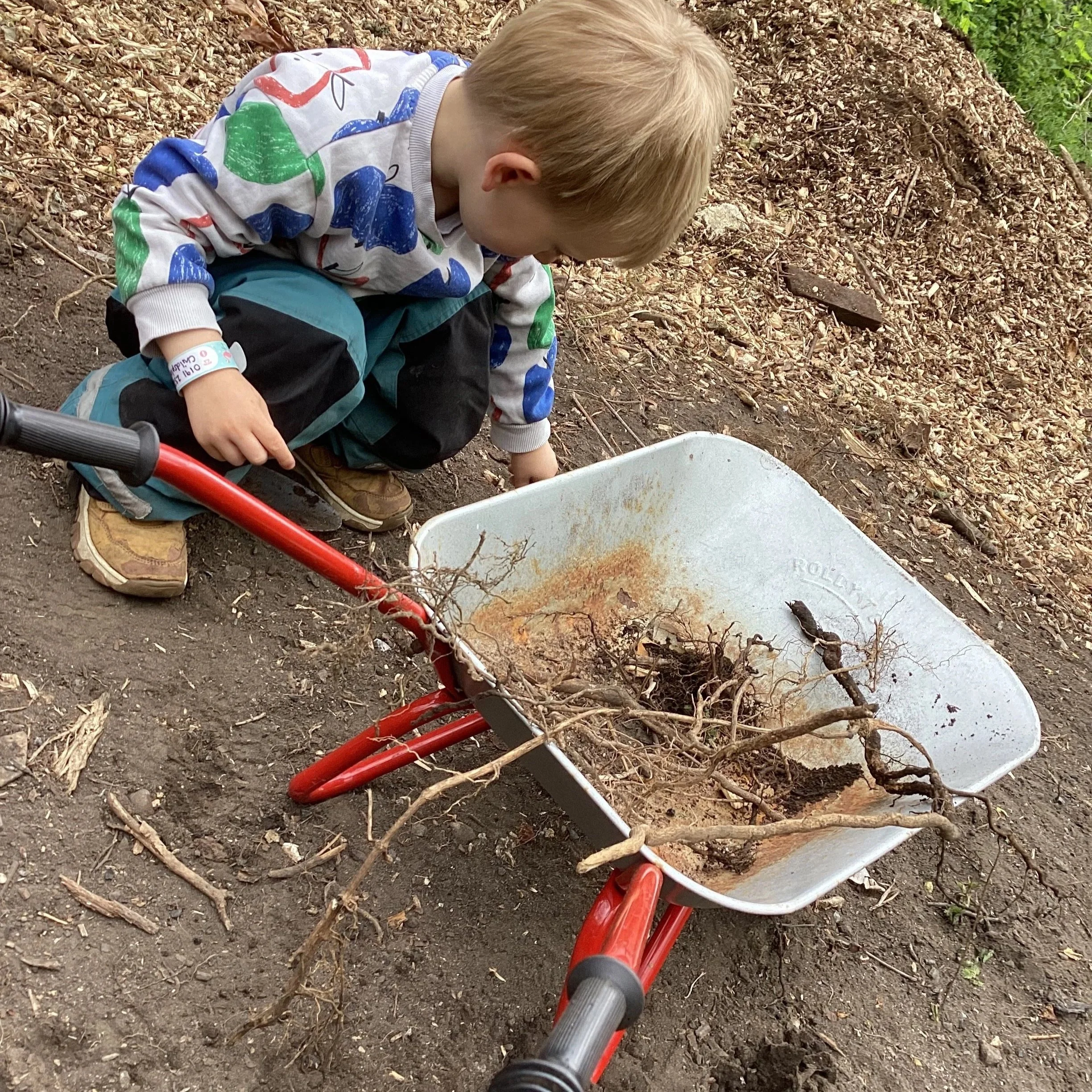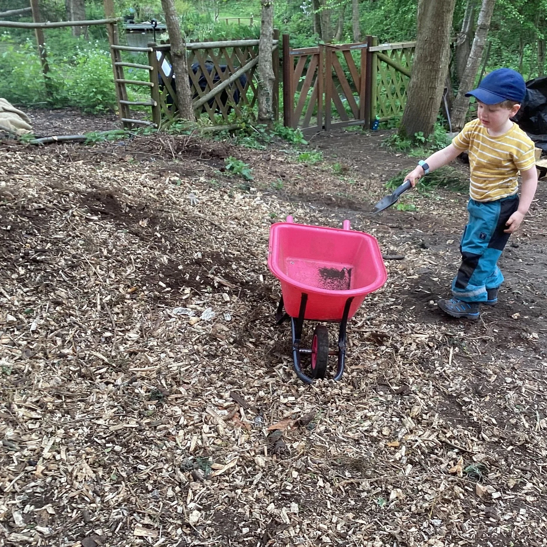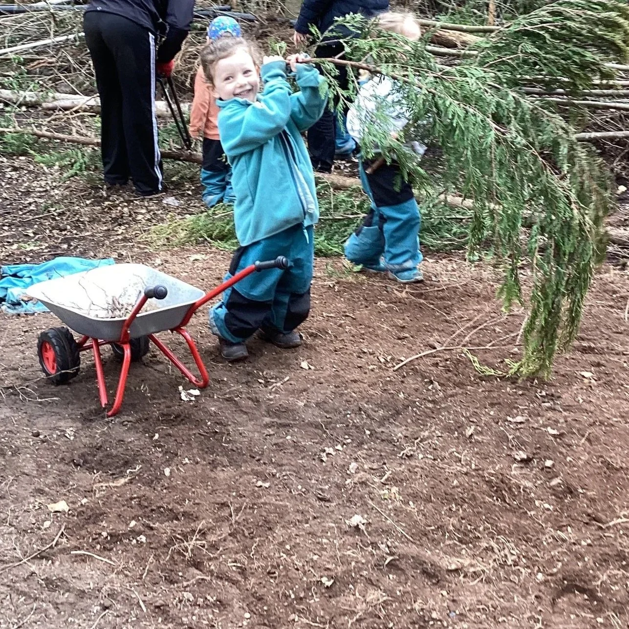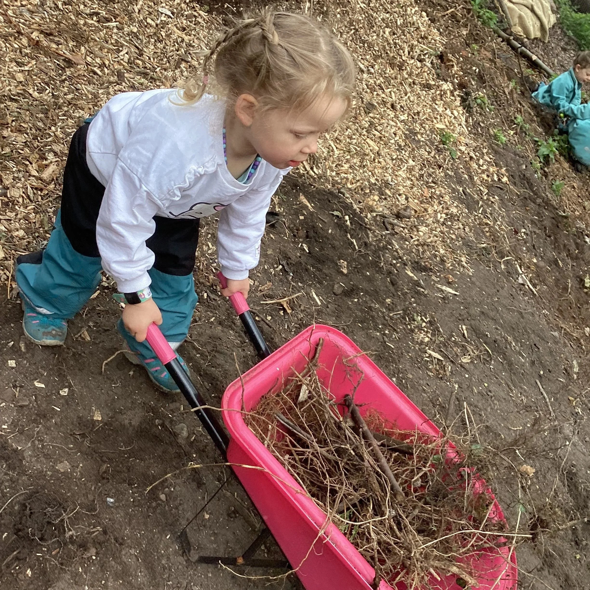 This week at forest school, the children experienced another highly productive and enjoyable day in the outdoor environment. The session began with the collection of sticks and stones to continue the construction of our bug hotel, which is now half complete. The children then worked collaboratively to clear the next section of the site using wheelbarrows, in preparation for laying a weed membrane. This task required considerable effort, including lifting and removing embedded sticks; loppers were used to ensure the ground was level, safe, and ready for the next stage.