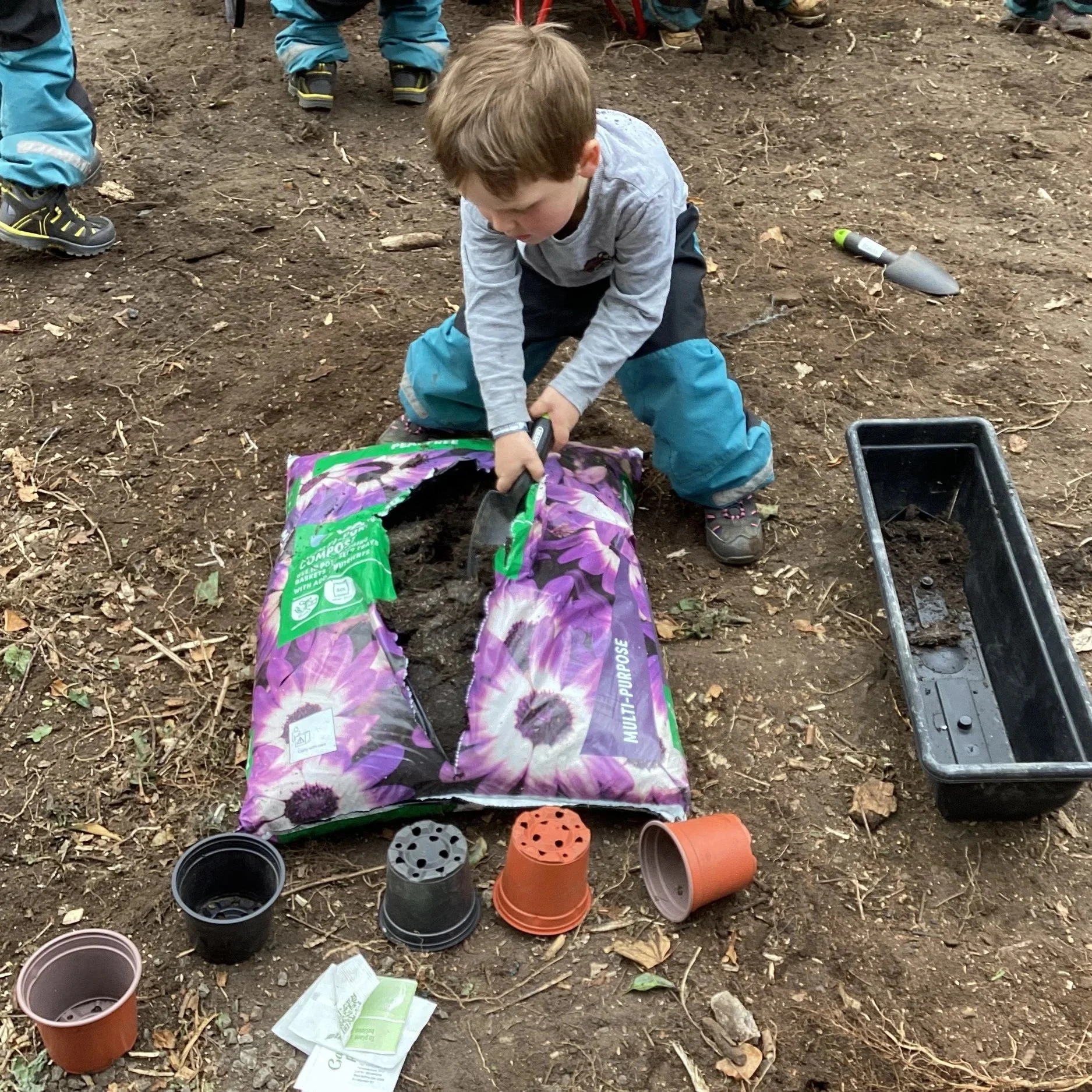 The day was further enriched by a couple of special visitors. The children were delighted to meet a small dog named Hercules, whose lively and confident nature made quite an impression. His owner explained he is a small dog with a bit personality! We were also visited by Steve the robin, a long-standing and familiar presence at Forest School. His appearance was warmly received, as he observed the children’s activities and, as usual, took the opportunity to search for worms nearby.