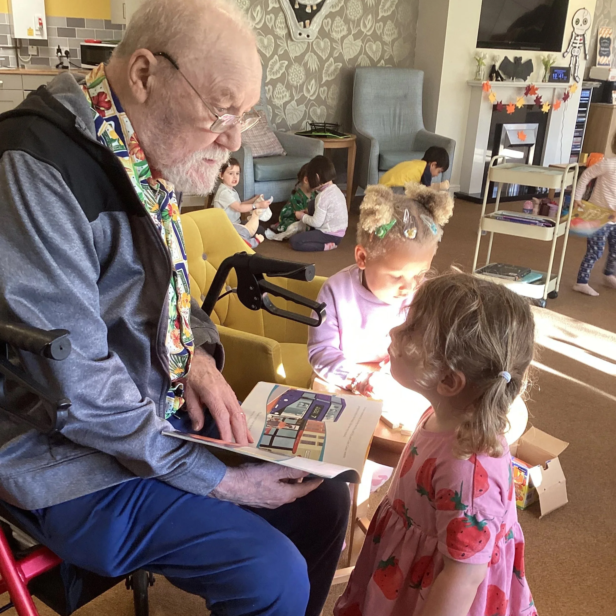The project has developed children’s confidence, language and listening skills as well as developing their curiosity about the world and the people who live in it. The children have developed an understanding of how to be play around our older friends which they often reiterate, “walking feet”, “kind hands” etc. The children are supportive of their older friends, moving tables and equipment to ensure they can join in with whatever is happening. This has not been ‘taught’ by the adults and instead children have been observant, they have been kind and caring and recognised that these older adults want to ‘play’ but need a little support to do it. These moments make us realise the impact this project has had on everyone. To observe the kindness and compassion from three- and four-year-olds is something really special as well as the joy and awe we see in the older adults faces when they spend time with our children. This really has been a wonderful intergenerational year!