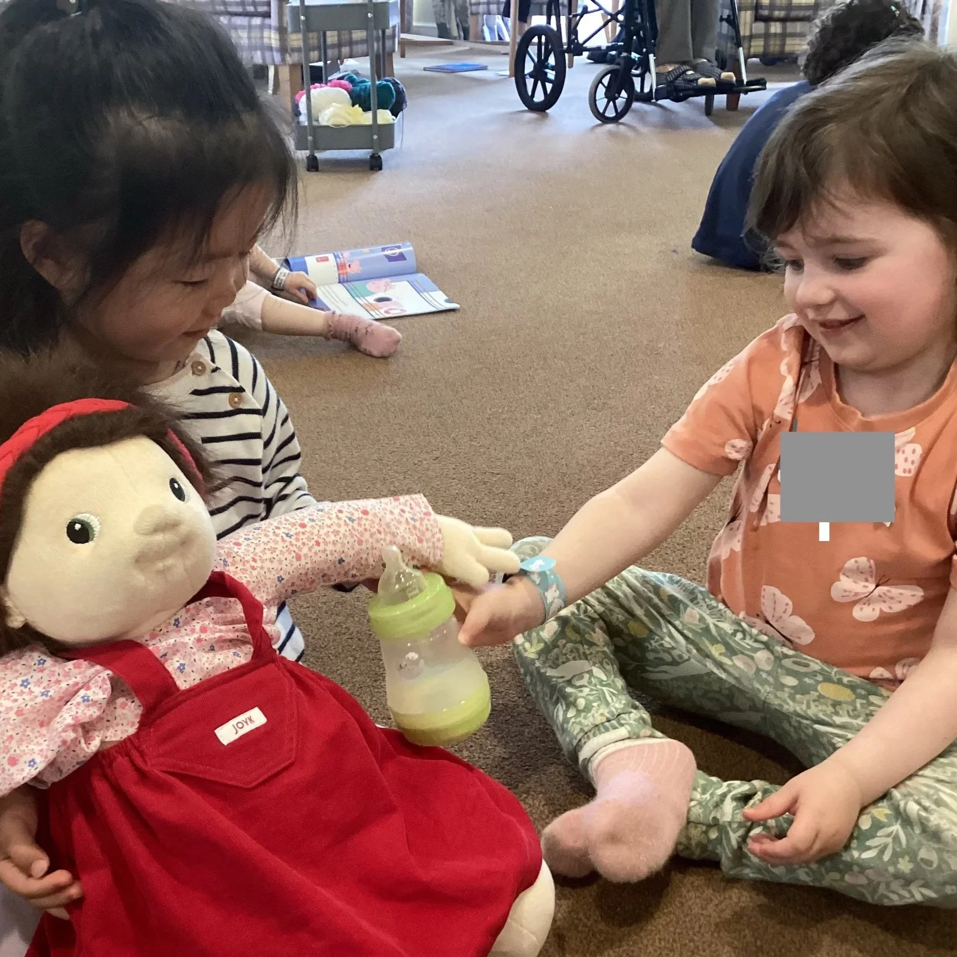 Hoopla was another fun activity which the older adults and children could play together however we were not prepared for how competitive everyone was! Our dolls were also a hit. The adults enjoyed giving them cuddles and changing nappies. One of the children drew a list of things we would need for next week. This included bottles, dummies and nappies to keep our dolls happy.