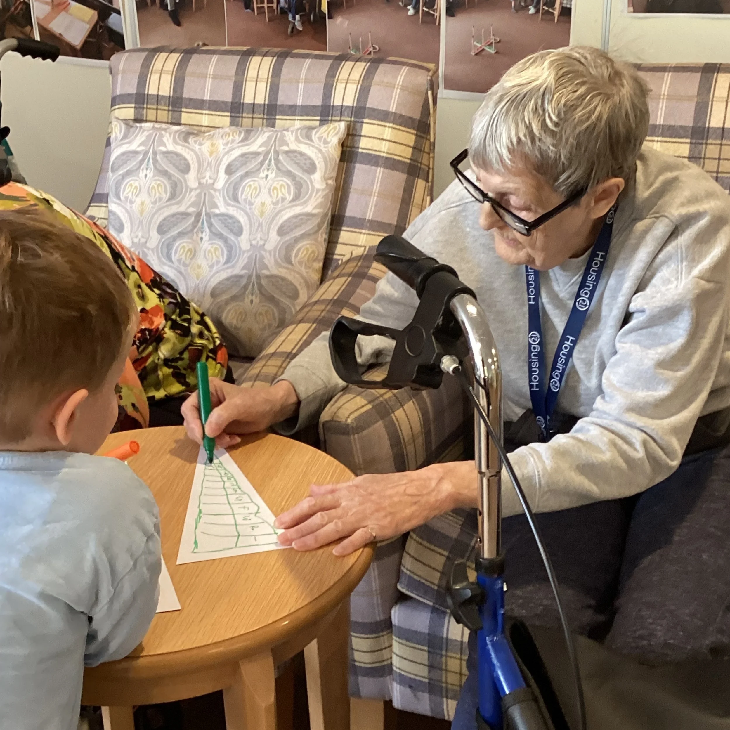 This week the children were very excited to visit their older friends and there were hugs all round. As our celebration day is coming up, the children and adults worked together to make decorations. We have decided to create some beautiful bunting which we will hang from the ceiling. Everyone got involved creating their own designs on their piece of bunting. We strung them all together and we can’t wait to showcase the result. What a true collaborative piece of art work!