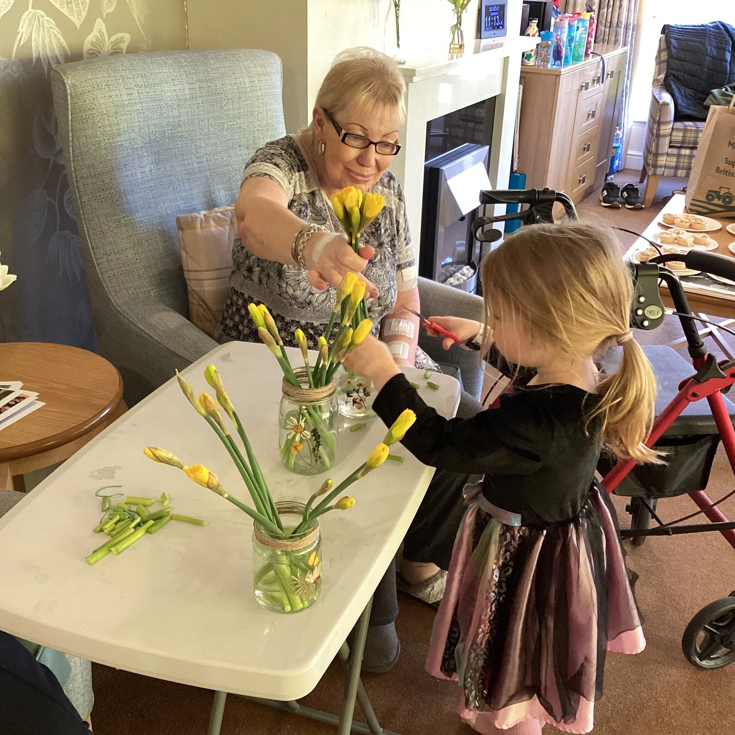 To kick off the celebrations, the children got creative by decorating jars to turn them into beautiful vases. With ribbons, stickers, and lots of wool, each vase became a unique masterpiece. Once the jars were ready, we carefully placed fresh daffodils into them. The children and grown ups were fantastic at arranging the flowers, and it was wonderful to see their pride as they admired their colourful creations.