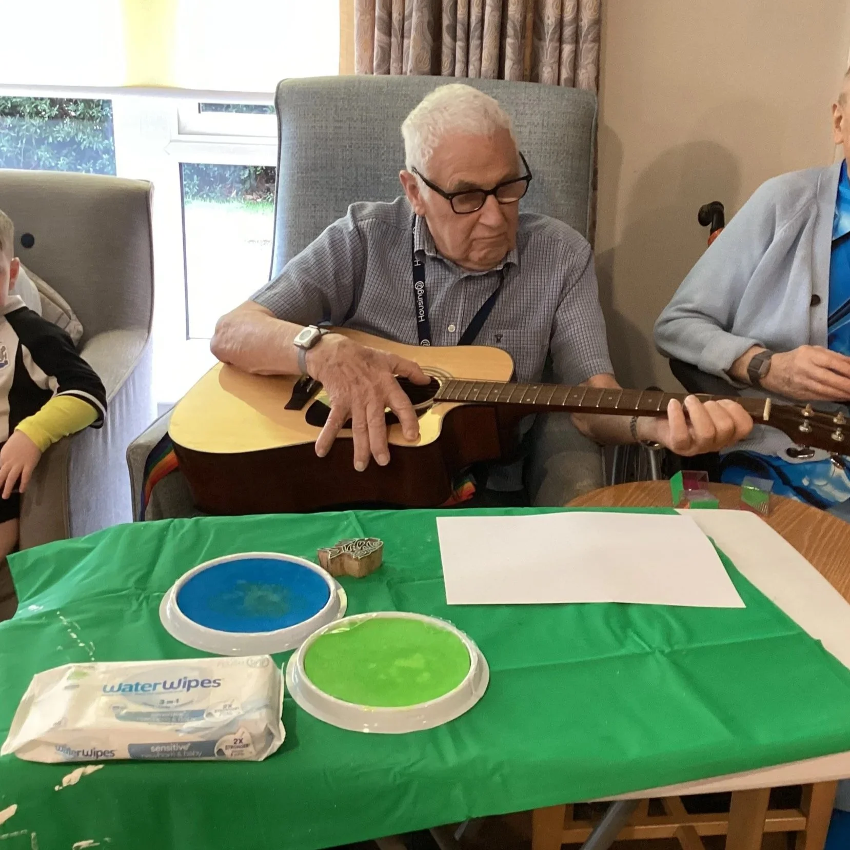 After asking for support from our nursery parents we were donated acoustic guitars. The guitars have now been taken to the care village, where they are already being put to wonderful use.